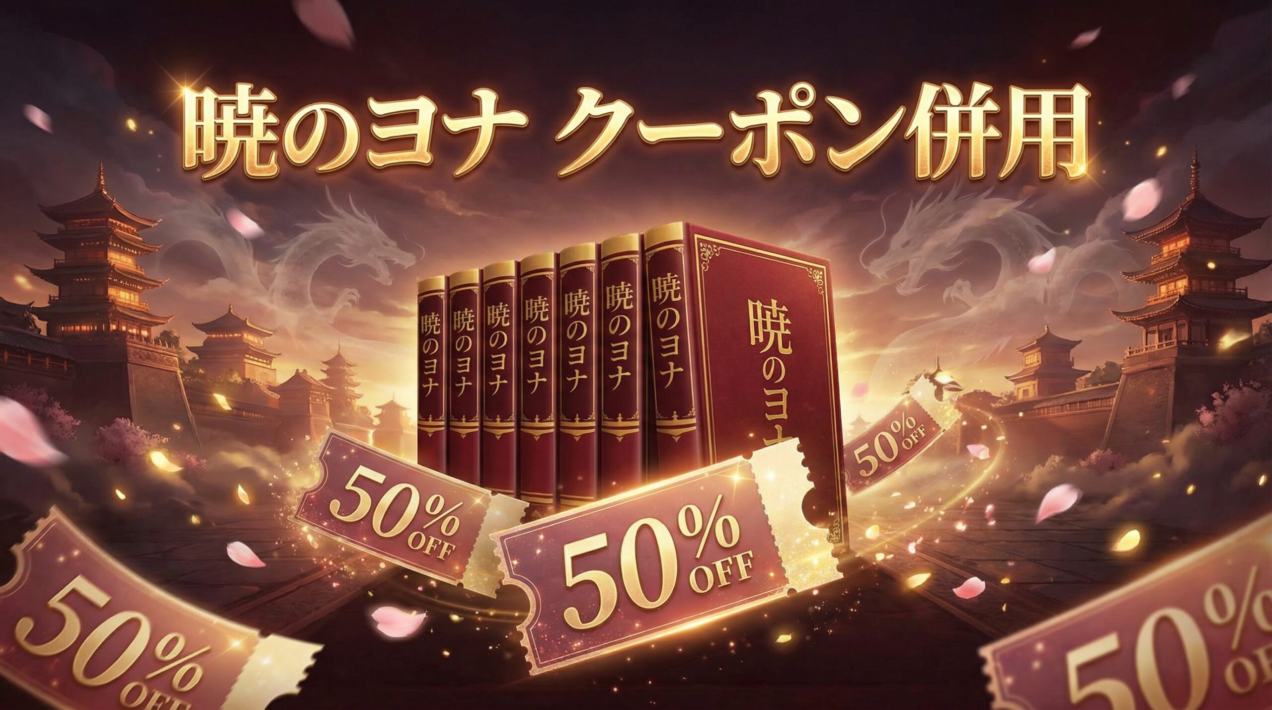 「暁のヨナ」全47巻を電子書籍でまとめ買いするなら、Amebaマンガの初回限定100冊まで50%即時還元クーポンが最もお得です。定価27,918円が実質約13,959円になり、さらにコイン増量キャンペーンとの併用で追加の節約も可能です。