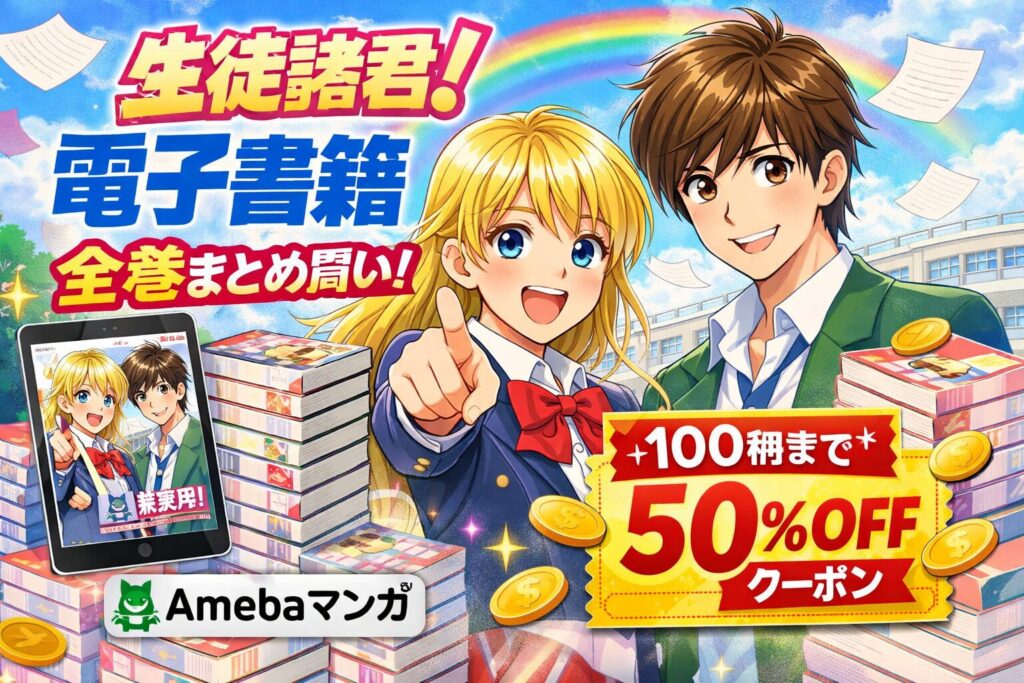 『生徒諸君!』シリーズ全巻を電子書籍でまとめ買いしたい方へ。結論から言うと、Amebaマンガの初回限定「100冊まで50%即時還元」クーポンを使えば、全シリーズ合計85巻(外伝含む)を定価約51,282円のところ実質約25,344円で購入できます。2026年2月25日...