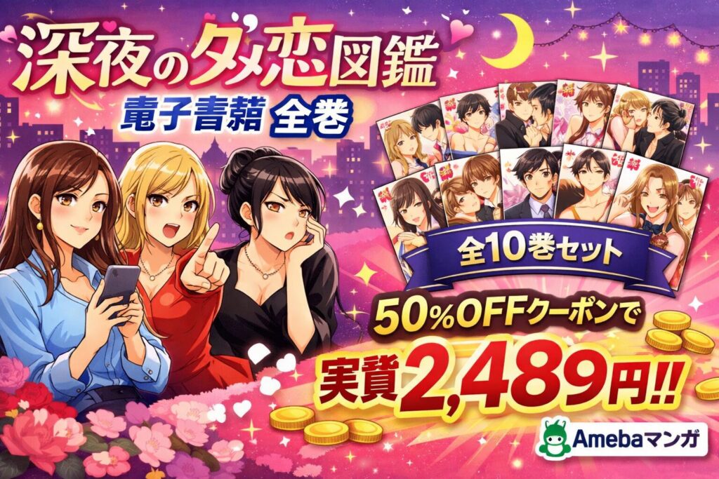 「深夜のダメ恋図鑑」電子書籍全巻まとめ買いの最安値は?全10巻を半額以下で読む方法【2026年2月最新】