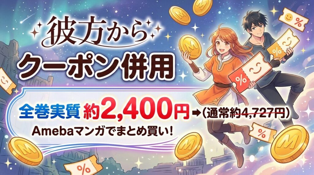 『彼方から』はクーポン併用で全巻いくら?結論:Amebaマンガなら実質約2,400円 ひかわきょうこ先生の名作『彼方から』全7巻(文庫版)は、Amebaマンガの初回限定100冊50%即時還元クーポンを使えば、通常約4,727円(税込)のところ実質約2,364円で全巻まと... -