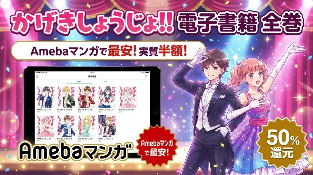 『かげきしょうじょ!!』の電子書籍全16巻をまとめ買いするなら、Amebaマンガの初回100冊50%即時還元クーポンを使うのが最安です。定価合計約10,200円が実質約5,100円と半額になります。2026年2月25日時点で全巻配信を確認済みです。 結論:Amebaマンガで全... -