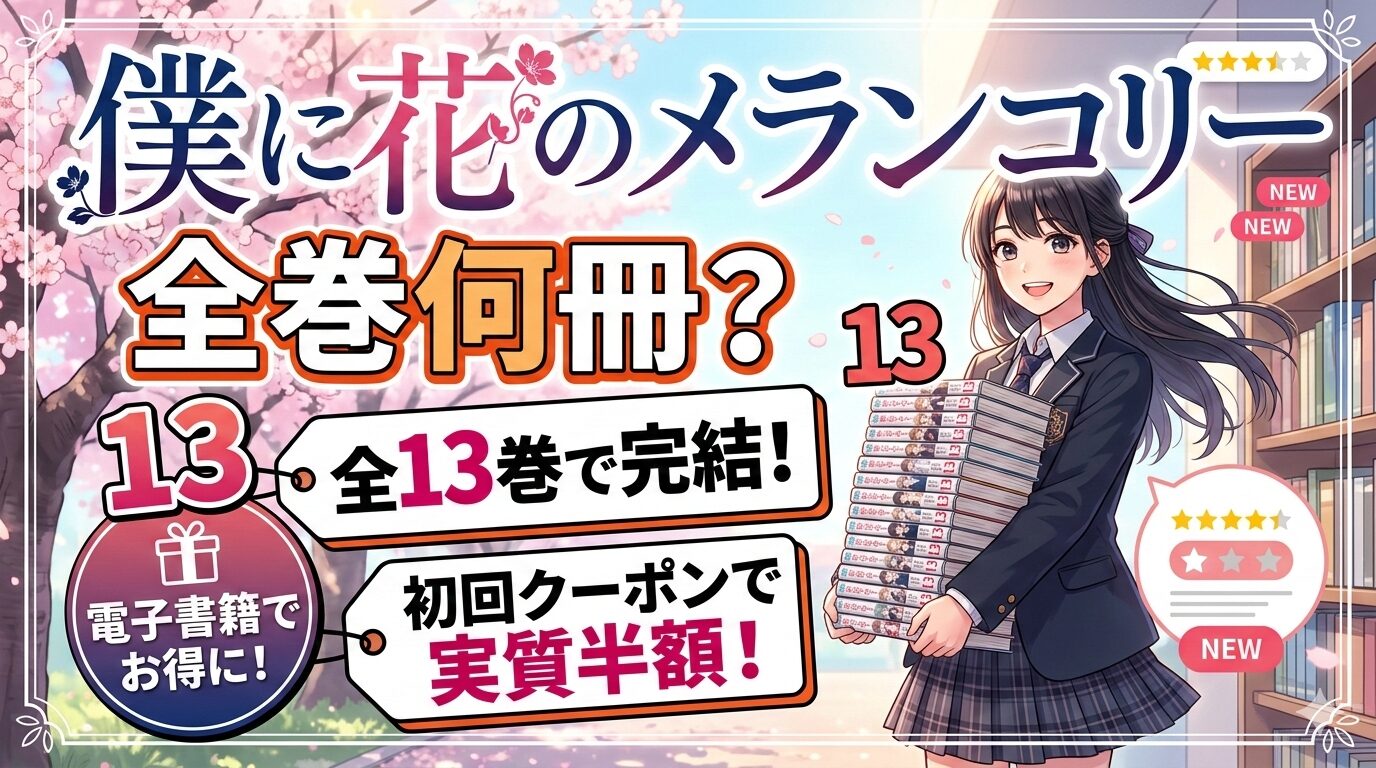 さらに詳しい価格比較は、『僕に花のメランコリー』は電子書籍で全巻読める?全13巻を最安でまとめ買いする方法【2026年2月最新】でも解説しています。