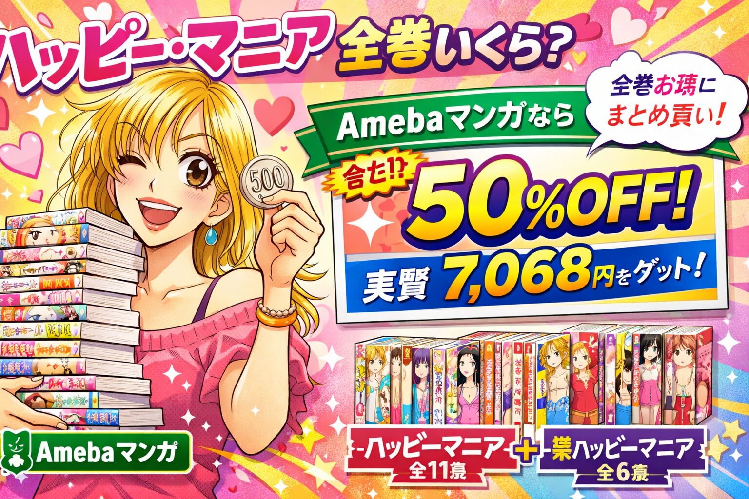 まとめ:ハッピー・マニア全巻はAmebaマンガの50%還元で実質約7,068円