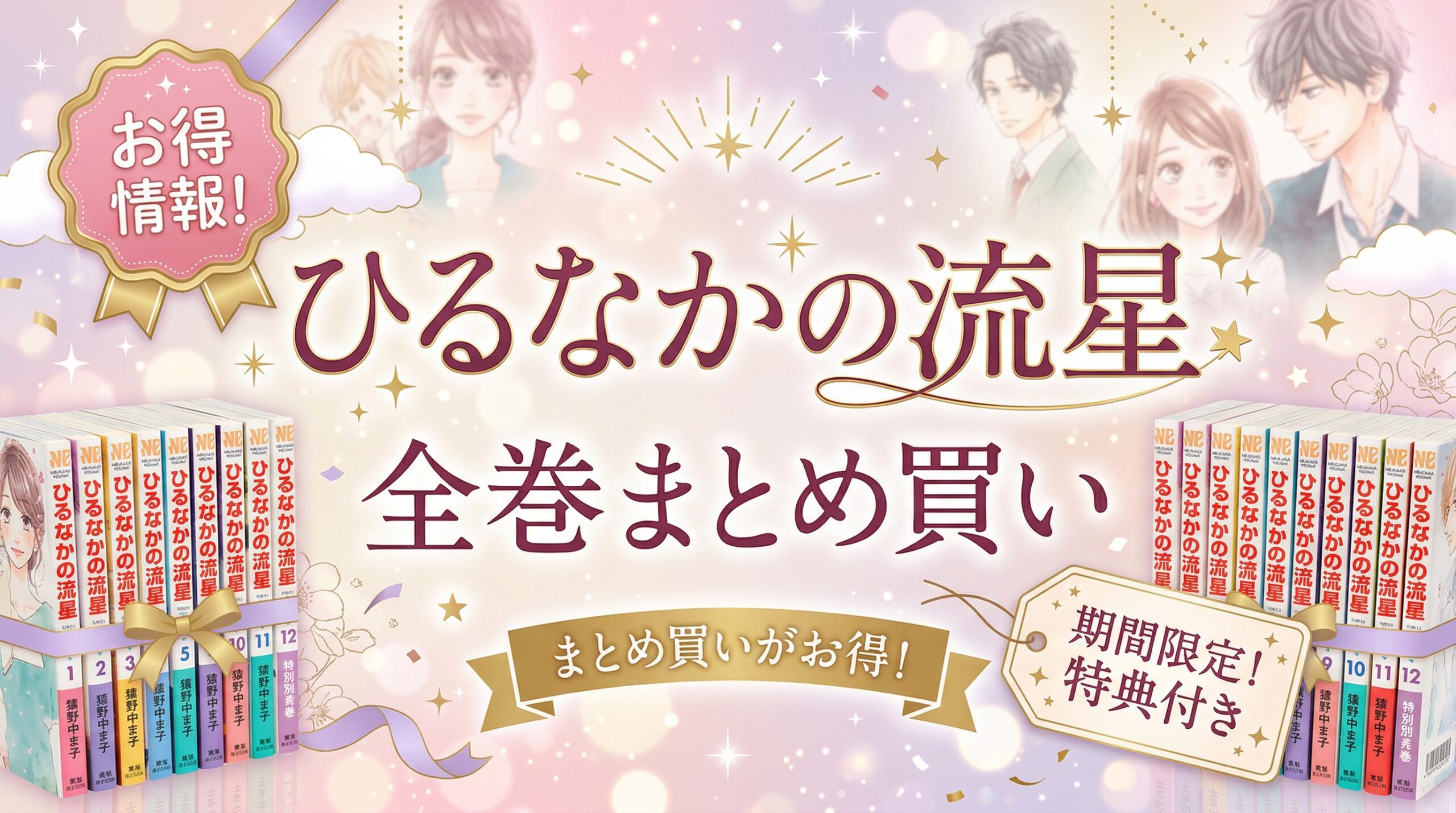 なお、同サイト内でも『ひるなかの流星』の電子書籍情報をまとめていますので、さらに詳しく知りたい方は『ひるなかの流星』電子書籍全巻まとめ買いの最安値は?Amebaマンガなら実質約3,344円【2026年2月最新】もあわせてご覧ください。