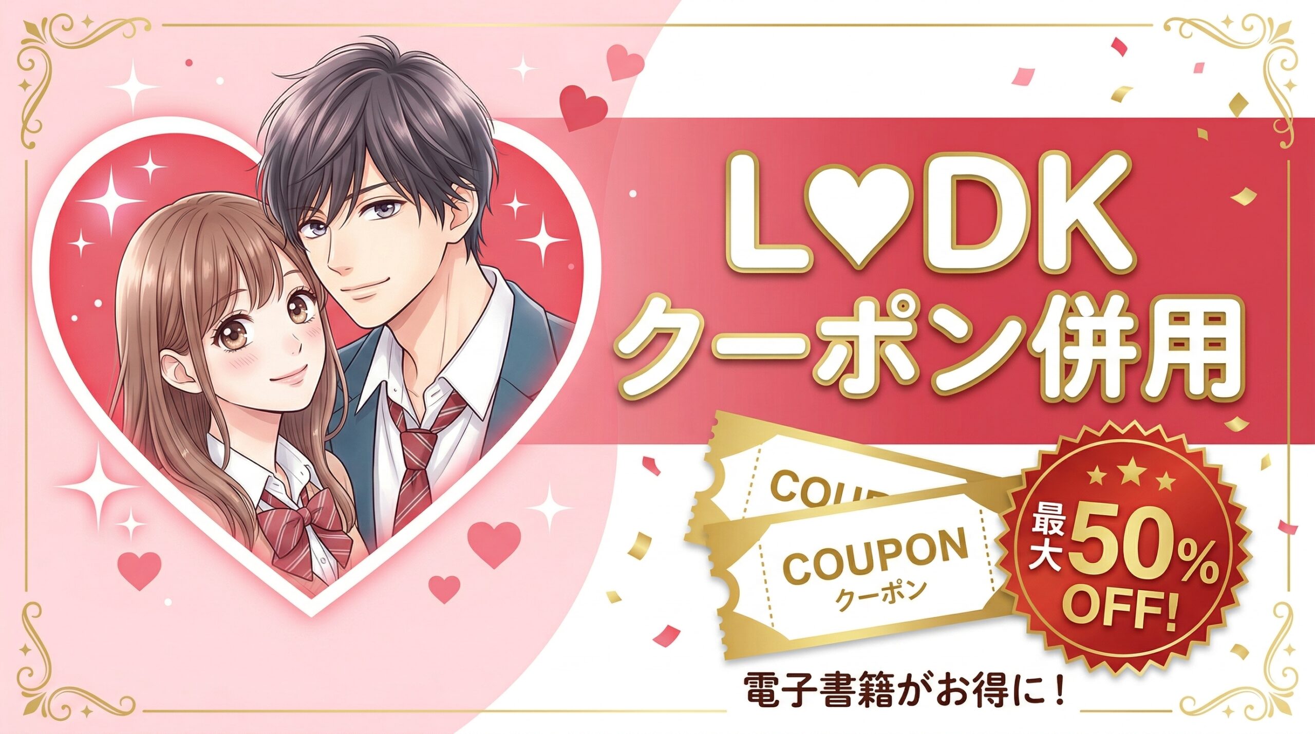 はい、2026年2月25日確認時点で、L♥DK本編全25巻およびL♥DK Pink既刊2巻のすべてに初回50%即時還元クーポンを適用できます。「100冊まで」が上限のため、27冊は余裕でカバーできます。