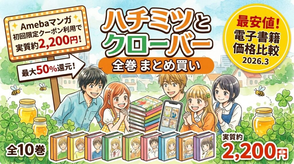 ハチミツとクローバー全巻まとめ買いの最安値は?電子書籍の価格比較とお得な購入方法【2026年3月】