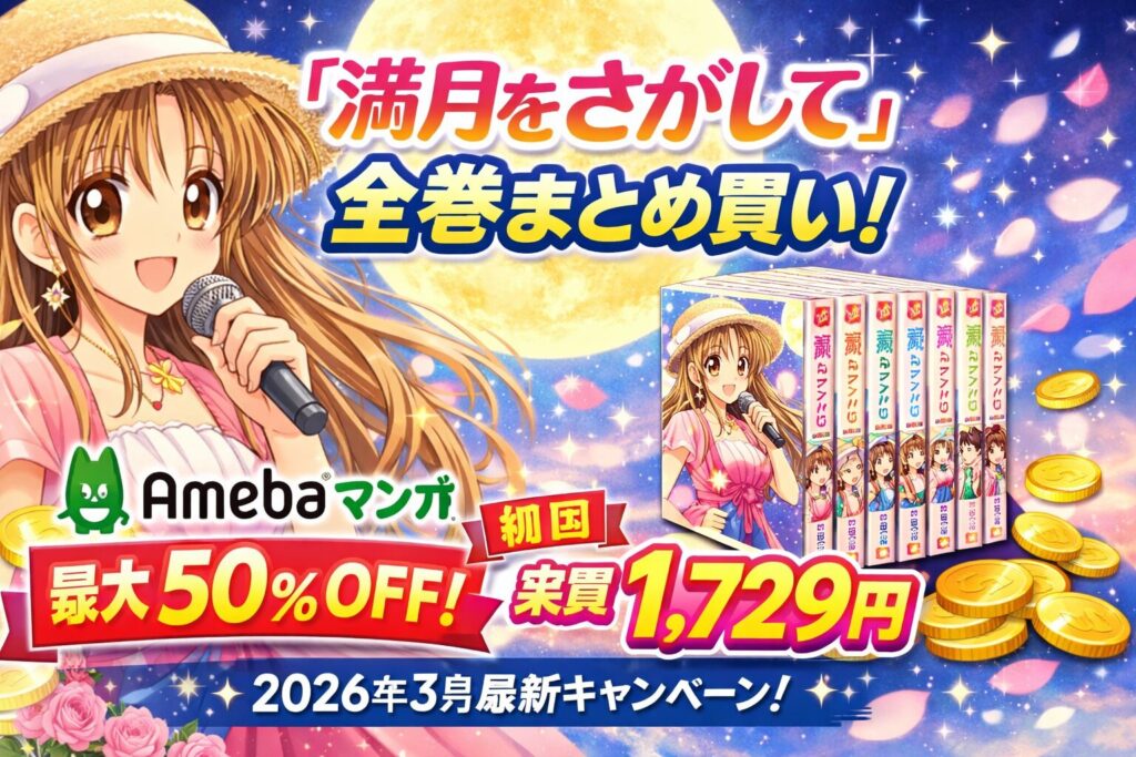 『満月をさがして』全7巻まとめ買いはAmebaマンガが最安|初回クーポンで実質約1,729円【2026年3月最新】 『満月をさがして』全7巻をまとめ買いするなら、Amebaマンガの初回限定クーポンを使うのが最安です。通常価格3,458円のところ、100冊まで最大50%即... -