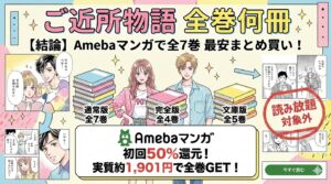 全巻をまとめ買いするなら、Amebaマンガの初回100冊50%即時還元クーポンを使うのが最もお得です。通常約15,360円のところ、実質約7,680円と半額近くで全シリーズを手に入れることができます。28冊は100冊の枠に余裕で収まるため、他の気になる作品もあわせてお得に購入可能です。