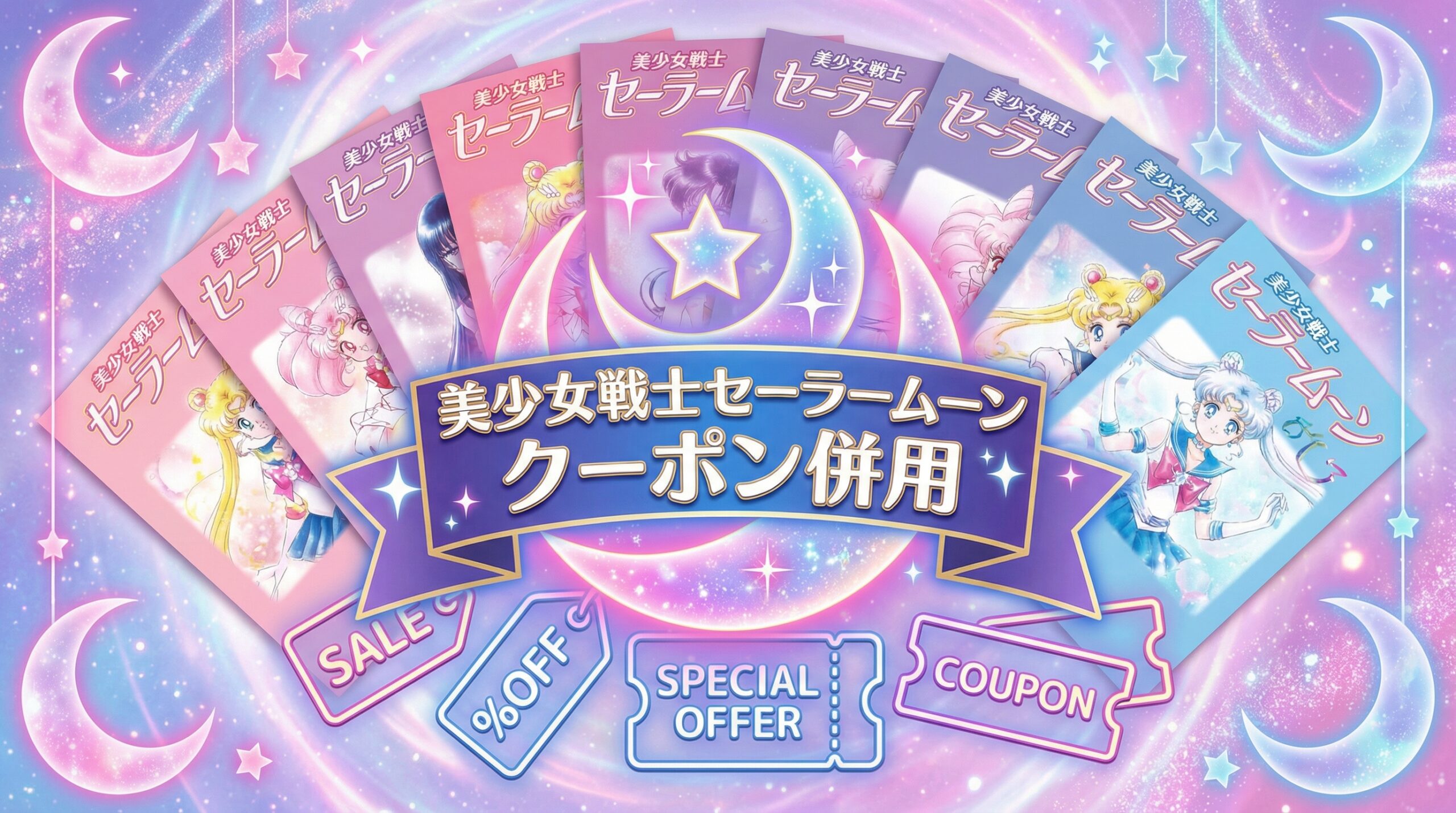 美少女戦士セーラームーンの漫画全巻を最安値でまとめ買いしたい方へ。結論からお伝えすると、Amebaマンガの初回限定100冊50%即時還元クーポンを使えば、完全版全10巻が定価8,580円→実質約4,290円で購入できます。さらにマンガコイン増量キャンペーンとの併用で、実質3,000円台も狙えます。